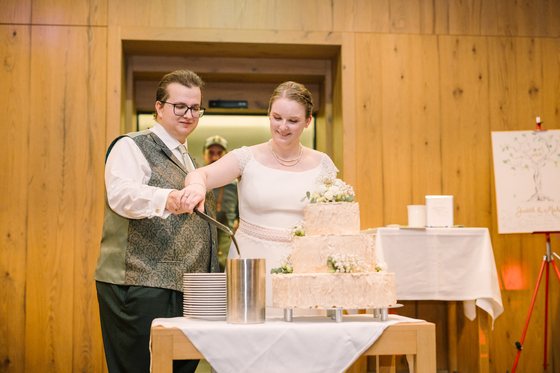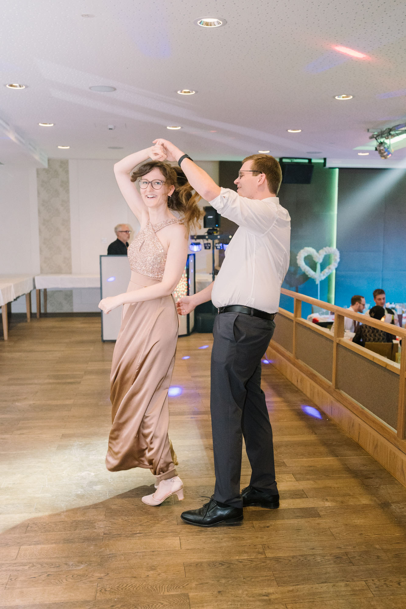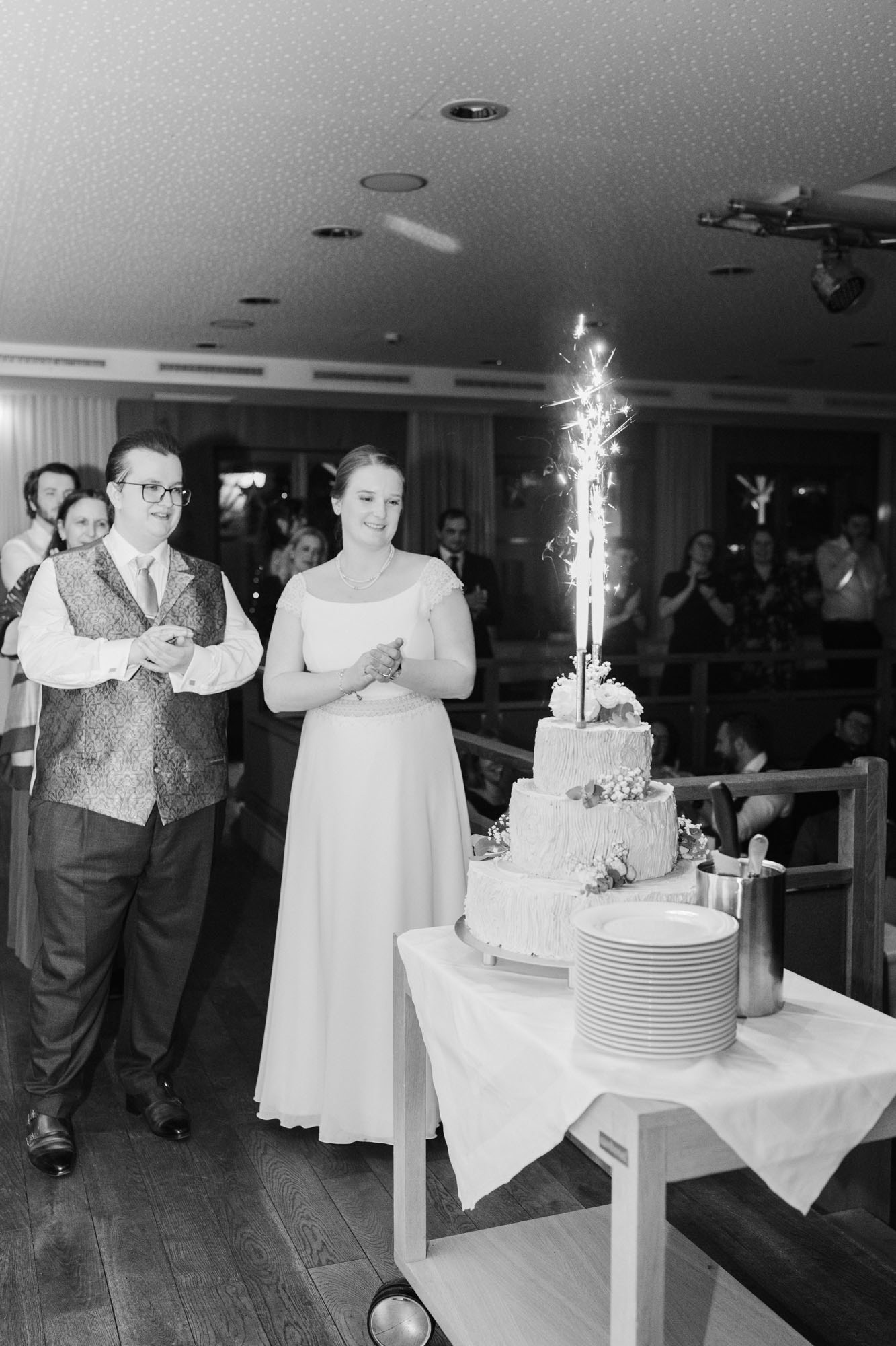 Nach dem Auszug und der Gratulation beim Wirten kam das gefühlte Highlight für uns. Judith & Michael hatten sich nämlich beim Tanzkurs kennengelernt. Dem entsprechend vollführten die beiden einen Hochzeitstanz, der uns schier den Atem raubte. Das werden Wir2 nie vergessen. Den gesamten Abend wurde noch fleissig weiter getanzt. Dazwischen kam noch die Hochzeitstorte daher. Eine Köstlichkeit in drei Ebenen. Während der gesamten Feier haben wir gezielt mit Blitz fotografiert.
