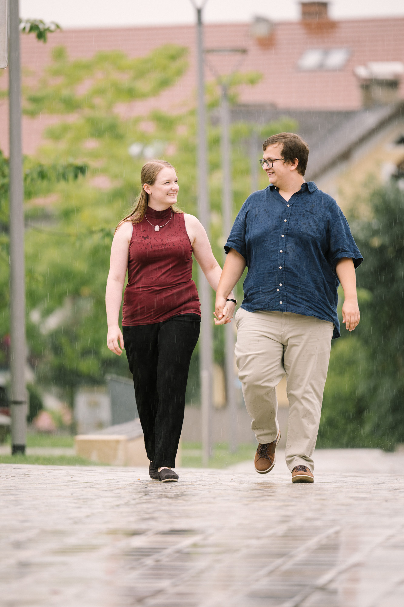Bei unserem persönlichen Treffen, wo wir über alles Wichtige sprachen, gab es unser übliches Kennenlernshooting. So konnten wir, also Fotografen und auch Hochzeitspaar, ein Gefühl füreinander bekommen. Judith & Michael ließen sich durch das Wetter an diesem Tag nicht beirren - auch bei Regen können so besonders schöne Momentaufnahmen entstehen.